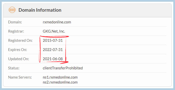 Information revealed in the domain name database shows that this pharmacy could have been online for a fairly long time. Typically, pharmacies that have been online for more time, have a long and successful track record of serving their customers. So this pharmacy might not be a scam.